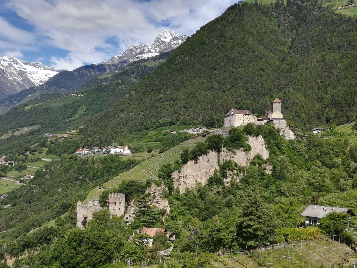 Ein Tagesausflug hat uns zum Schloss Juval geführt, dem Sommer-Wohnsitz von Reinhold Messner mit angegliedertem Museum, in dem er viele Exponate aus dem Himalaya ausstellt und auch einen tibetischen Gebetsraum eingerichtet hat. Unser Auto haben wir in einem kleinen Ort abgestellt und uns frohgemut an den Aufstieg zum Schloss gemacht, dem Wegweiser folgend: „Juval ‘50“. Zehn Minuten und gefühlte 500 anstrengende Höhenmeter später kamen wir an einem identischen Schild vorbei mit dem Hinweis, dass es noch 50 Minuten sind bis zum Ziel. Weitere zehn Minuten und noch mal 500 Höhenmeter weiter informierte uns ein dritter Wegweiser wiederum darüber, dass wir noch 50 Minuten zu laufen hätten.