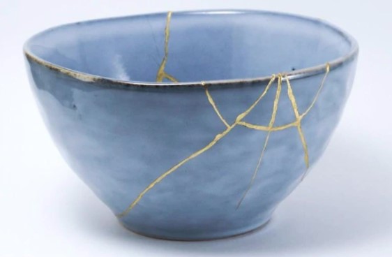 In Japan gibt es die Kunst, zerbrochene Gegenstände so wieder zusammenzufügen, dass die Risse extra betont werden. Die mit „Kintsugi“ (Goldreparatur) wieder heil gemachten Sachen erstrahlen mit allen Fehlern und Makeln in neuem Glanz und entwickeln durch die betonten “Narben“ und ihre unterstrichene Zerbrechlichkeit eine ganz neue, sehr anrührende Schönheit.